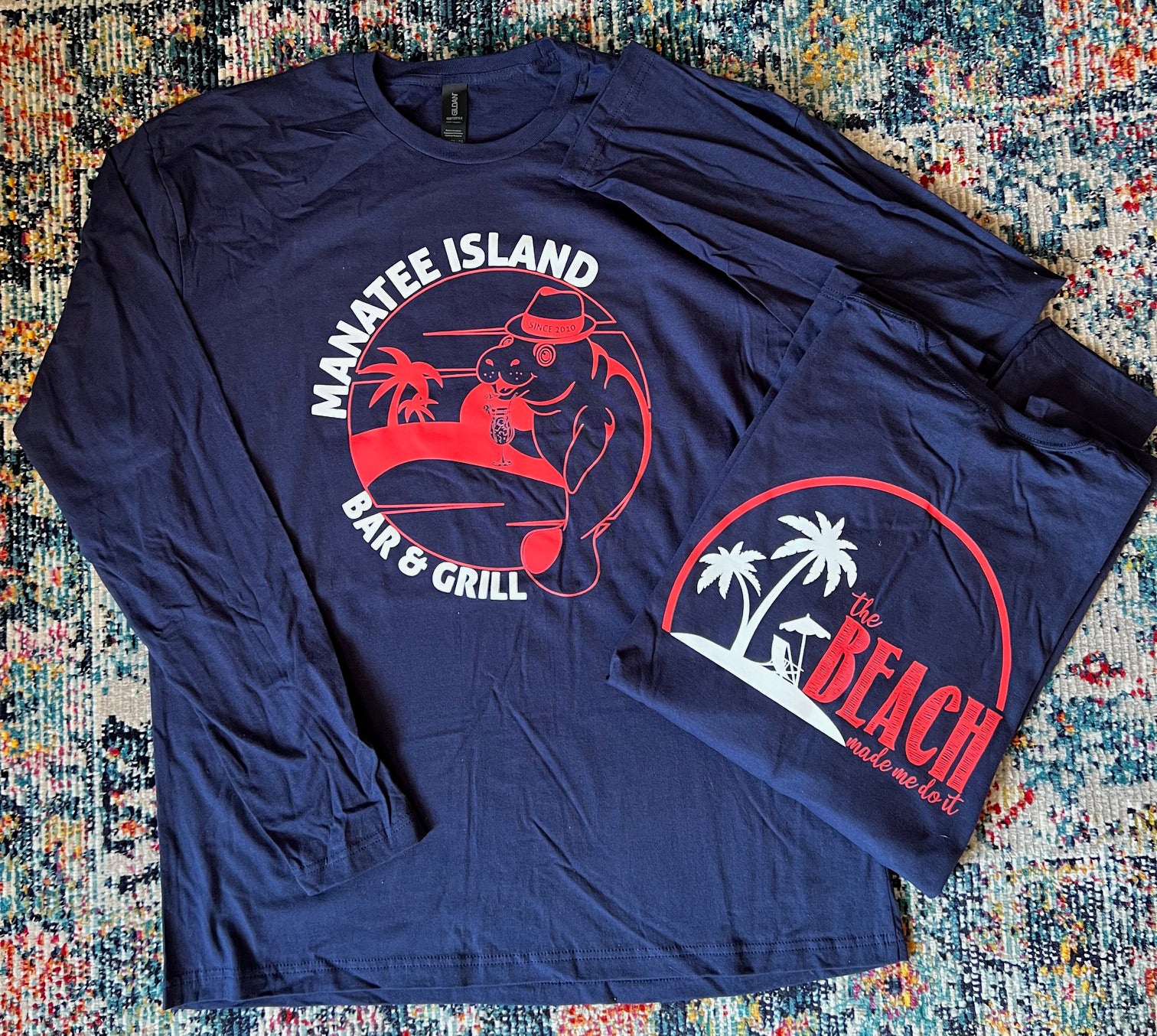 Our Beach Made Me Do It Long Sleeve T-shirt is the perfect souvenir for your trip to Hutchinson Island. Show of your support for local businesses or give the gift of the beach to your friends and family. Available in sizes S, M, L, XL.