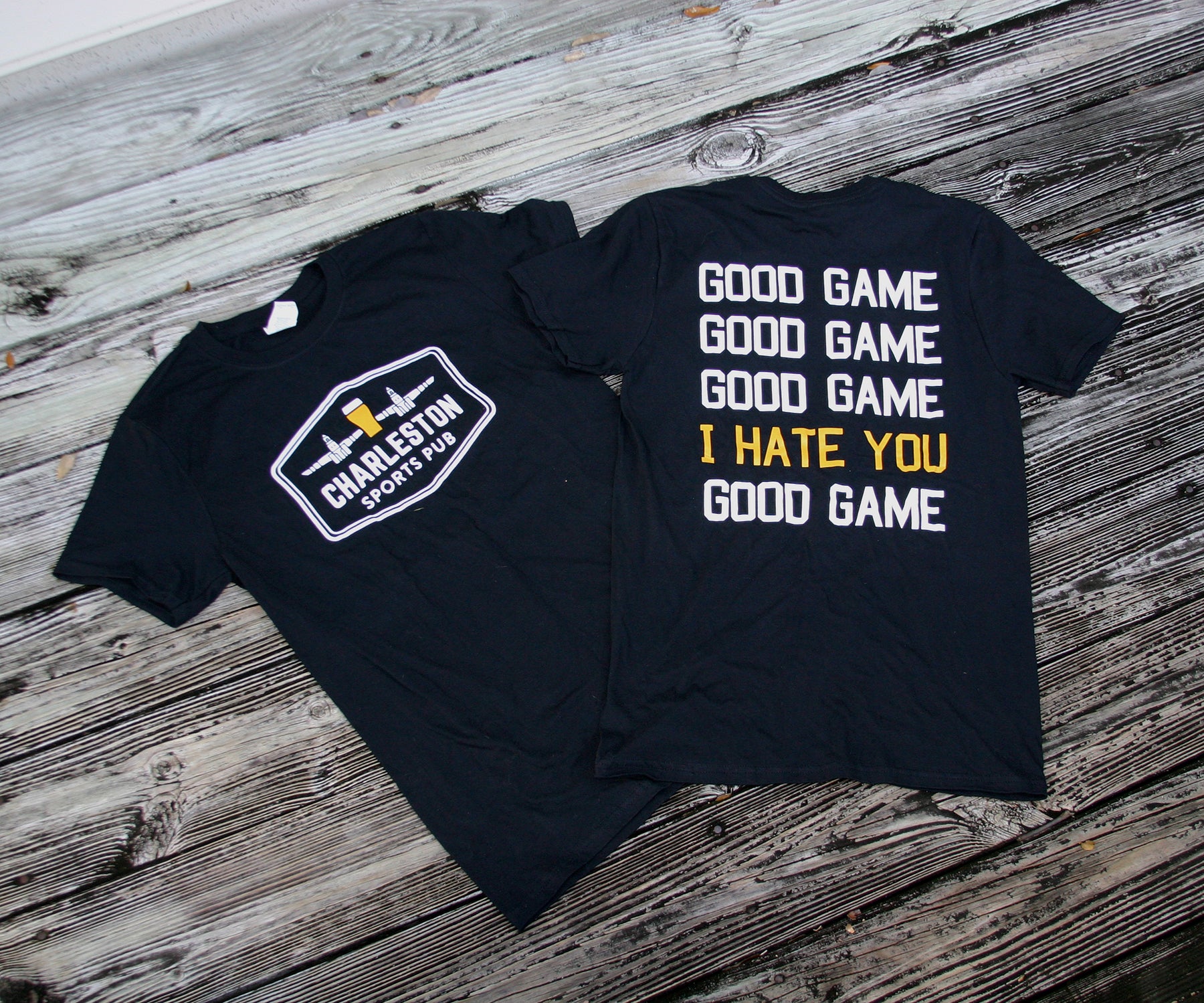 Every team player knows the feeling of good sportsmanship, but you also know it doesn't ring true for EVERYONE on the field. Strut your sportsmanship in our Charleston Sports Pub "Good Game" t-shirt. Available in black; sizes S, M, L, XL, 2XL *Also available in CSP of Clemson.